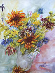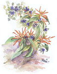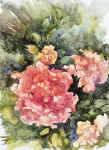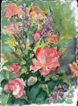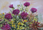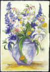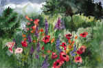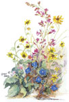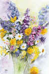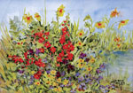 Watercolor greeting cards and prints by Grace Berg of what her gardens produce, FLOWERS! Every color, shape & size can be found in her gardens. Some are wild flowers and some are perennials and annuals. Anyway you look at them, they are all bright and colorful! - Click image for larger size and availability of Original Prints.
